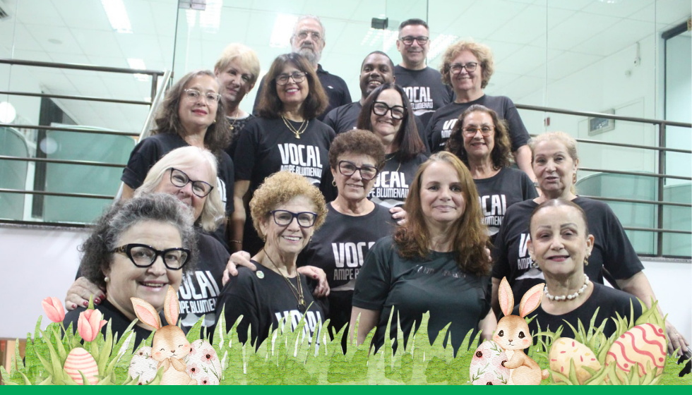 🎶✨ O Grupo Vocal do Núcleo Cultural da AMPE Blumenau vai encantar a Vila de Páscoa! O Grupo Vocal fará apresentações especiais na Vila de Páscoa, levando música, cultura e emoção para o público. 🐰🐾 📅 Datas das apresentações: 25/03 e 01/04🕢 Horário: 19h30min📍 Local: Vila Germânica – Palco Externo
