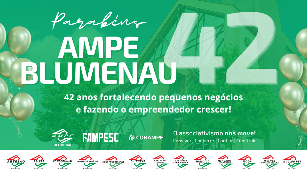 Hoje celebramos muito mais do que uma data: celebramos histórias, sonhos e conquistas! 👏🏻👏🏻 A AMPE Blumenau comemora 42 anos de história, dedicação e compromisso com o fortalecimento dos pequenos negócios, e cada capítulo dessa trajetória foi construído por pessoas que acreditam, lutam e fazem acontecer todos os dias. 🌟