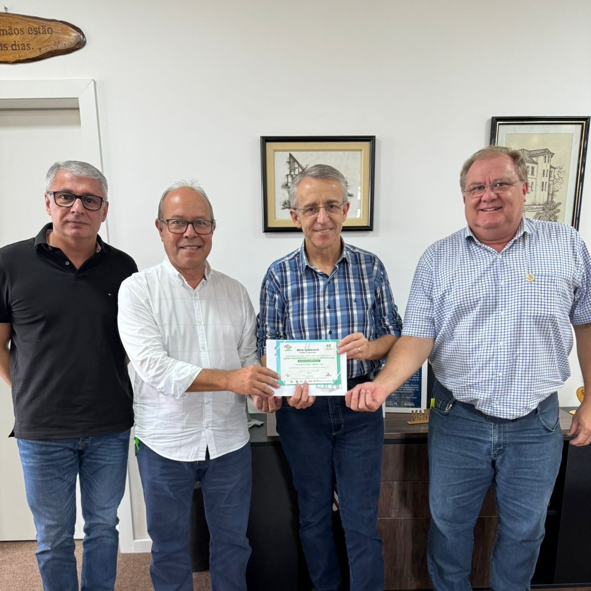 Na manhã desta quarta-feira (20/03) o presidente da Ampe Blumenau, Demócrates Schmitd, esteve na Prefeitura Municipal e fez a entrega ao prefeito Mário Hildebrandt de convite para participar da Semana de Atividades Ampe 40 anos, com especial destaque para o jantar de confraternização que acontecerá no dia 4 de abril na RVG Rivage, encontro tradicional de centenas de associados e convidados.