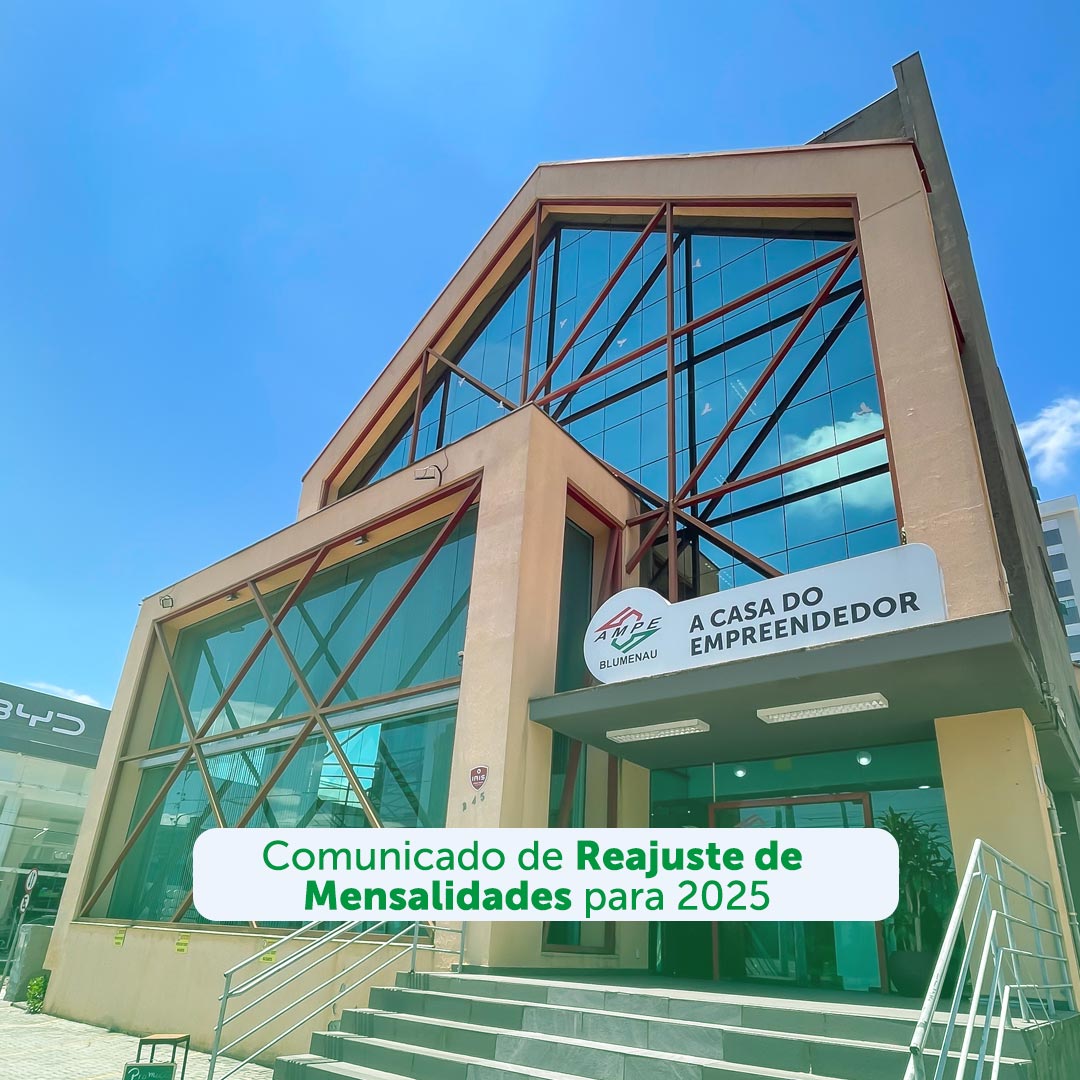 A AMPE Blumenau informa que, conforme decisão da Diretoria, devidamente aprovada pelo Conselho Deliberativo, as mensalidades dos associados serão corrigidas a partir de fevereiro de 2025, com base no índice INPC acumulado de 2024 (4,767940%). Desta forma, o valor da mensalidade será atualizado de R$ 76,90 para R$ 80,57.