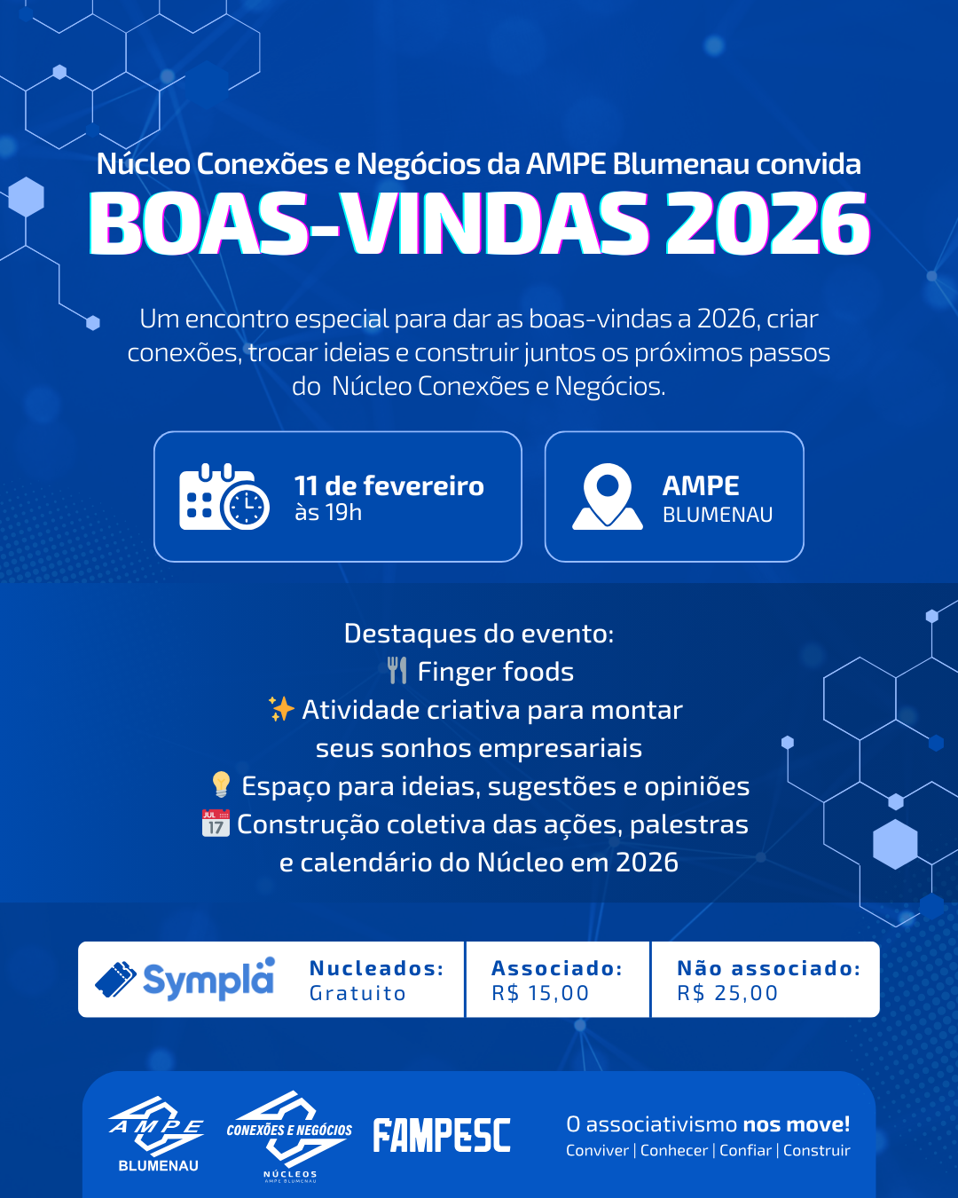 👉 Inscrições pelo Sympla: https://www.sympla.com.br/evento/boas—vindas-2026—nUcleo-conexOes-e-negOcios/3303102