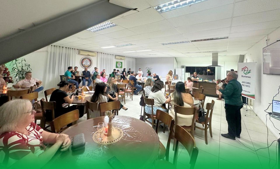 A AMPE Blumenau realizou, no dia 1° de dezembro, um encontro da Diretoria Executiva com os integrantes do Conselho Deliberativo, do Conselho Fiscal e Coordenadores dos Núcleos Setoriais, com a finalidade de apresentar um Relatório das atividades desenvolvidas no decorrer de 2025. A condução dos trabalhos coube ao presidente da