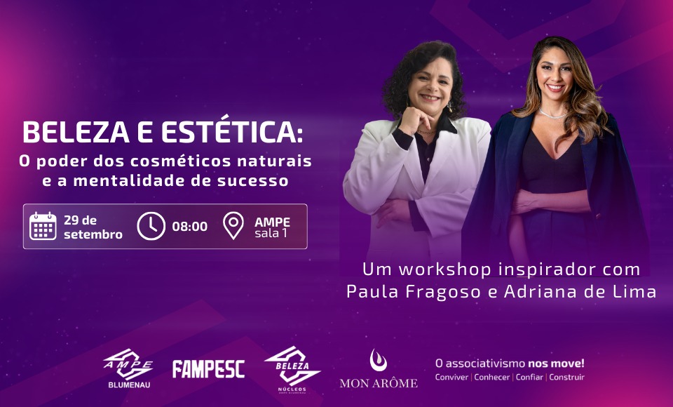Confira abaixo os workshops: Workshop sobre IA e Inovação🗓 Data: 19 de setembro🕕Horário: Das 18h30min às 21h30min📍Local: AMPE BlumenauPalestrante: Alê Mendes💰Ingressos: Não Associado: R$ 90,00
