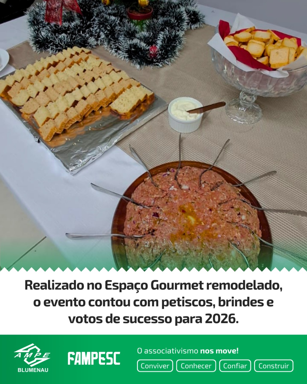 Por isso foi realizado no Espaço Gourmet, agora totalmente remodelado, com petiscos e votos de sucesso para 2026.