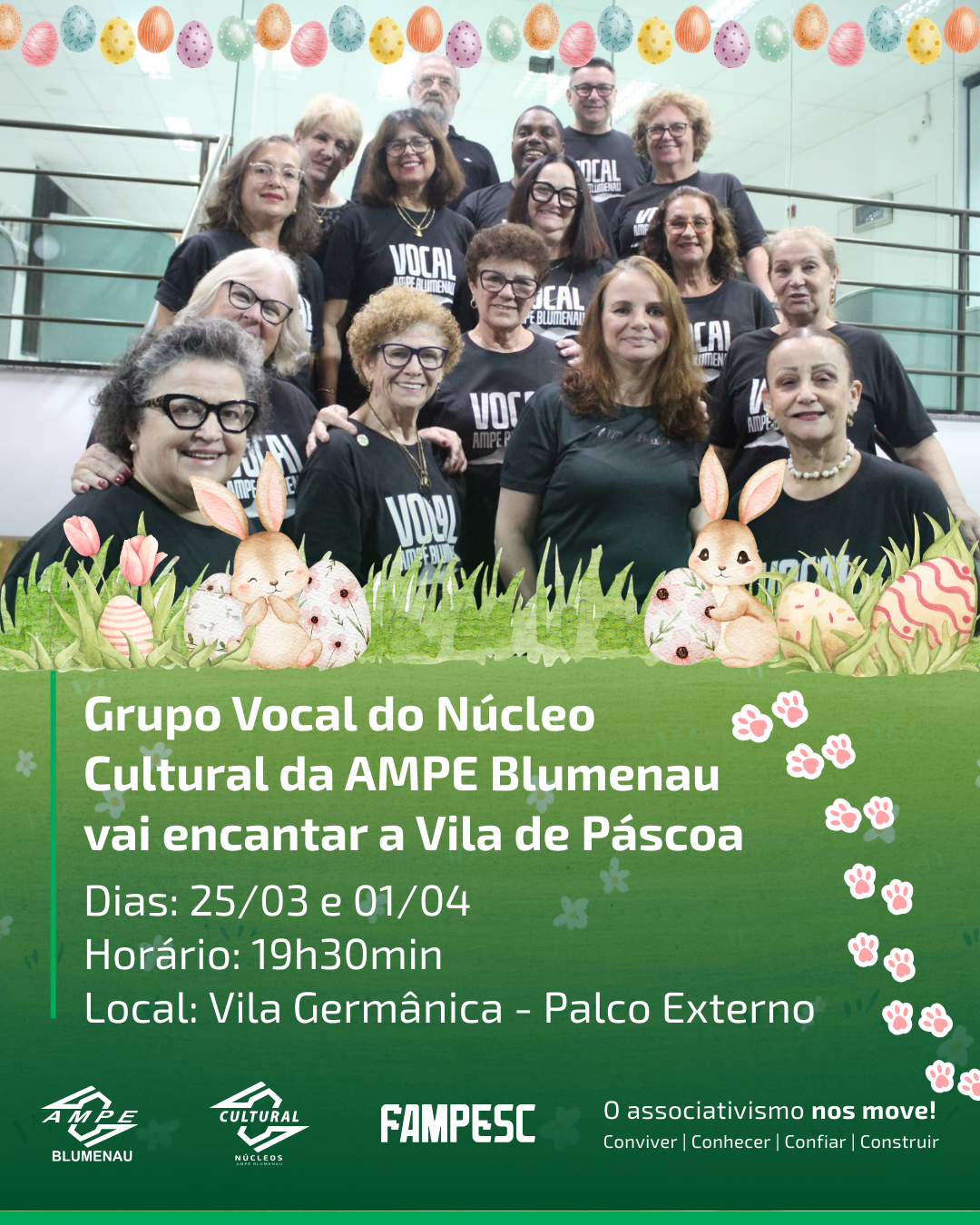 🎶✨ O Grupo Vocal do Núcleo Cultural da AMPE Blumenau vai encantar a Vila de Páscoa!