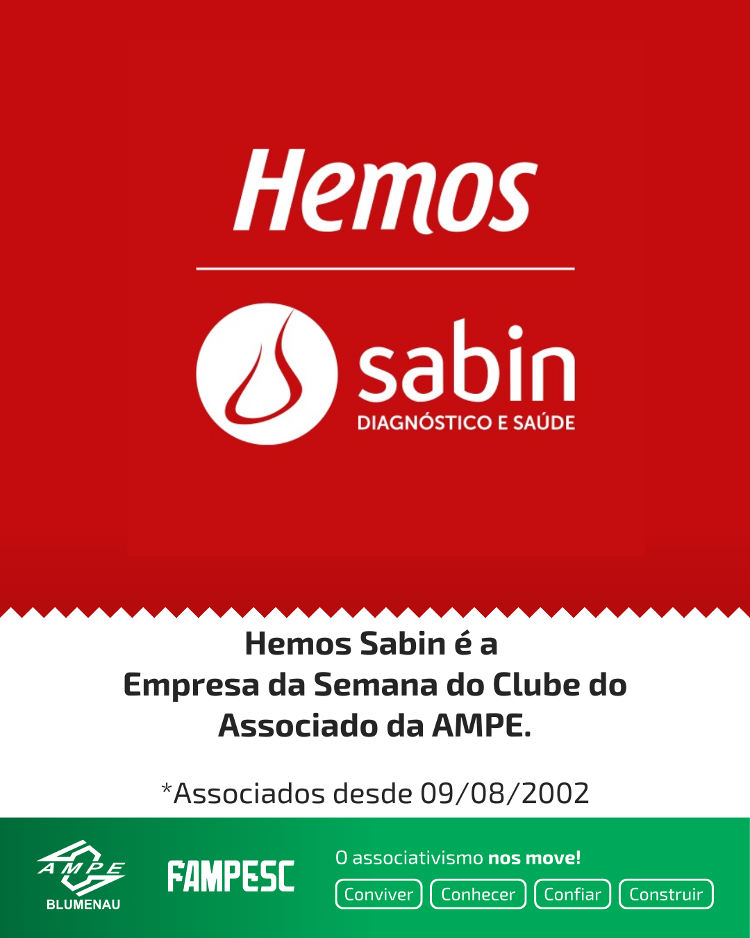 #AMPEBlumenau #ClubeDoAssociado #EmpresaDaSemana #HemosSabin #Saúde #ExamesLaboratoriais #ParceriasQueFortal