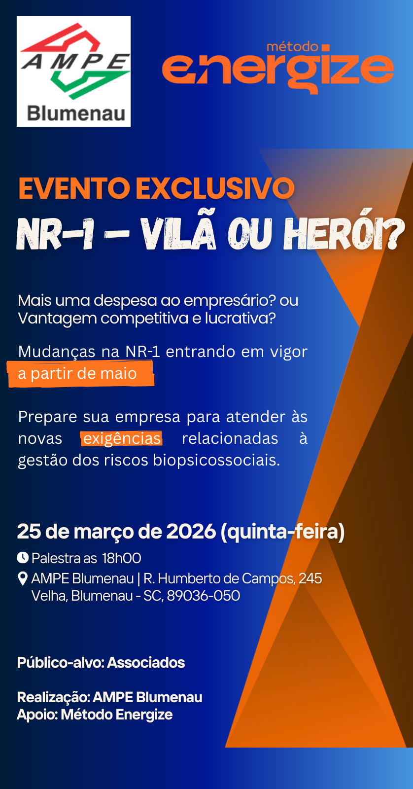 📍 Ampe Blumenau – R. Humberto de Campos, 245 – Velha, Blumenau – SC